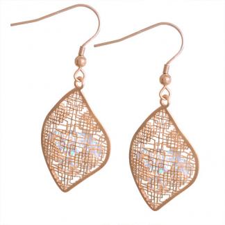 STAINLESS STEEL EARRING IN LEAF SHAPE WITH CZ IN IP ROSE COLOR