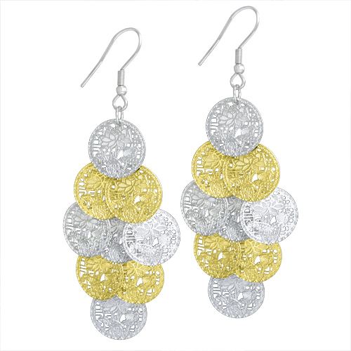 STAINLESS STEEL EARRING WITH 9PCS OVAL IN IPG 2 TONE
