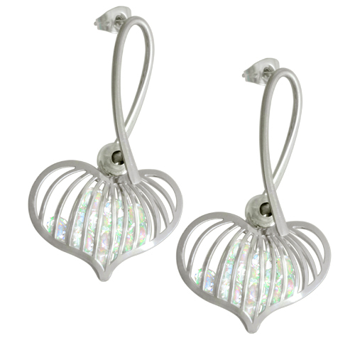 STAINLESS STEEL EARRING IN HEART SHAPE WITH CZ INSIDEALL IN S/S COLOR