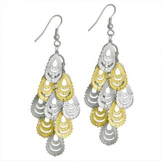 STAINLESS STEEL EARRING IN IPG TWO TONE WITH 9PCS OF DROPS