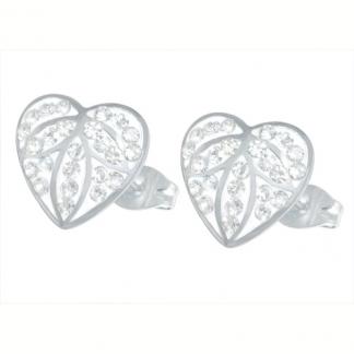 STAINLESS STEEL EARRING IN HEART SHAPE WITH CZALL IN S/S COLOR