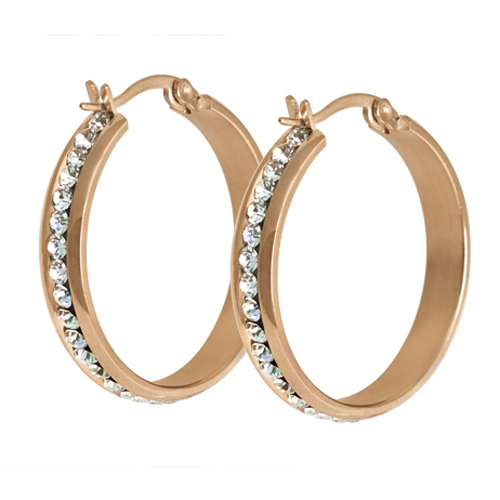 STAINLESS STEEL EARRING IN ROUND SHAPEWITH CZ AROUND ALL IN IP ROSE