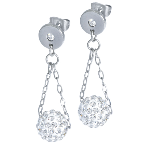 STAINLESS STEEL EARRING WITH CZ AND 1 CZ BALL