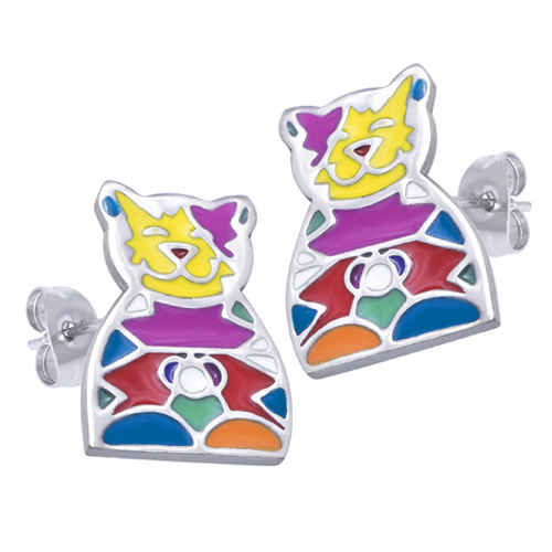 STAINLESS STEEL EARRING IN COLORFUL CAT SHAPE