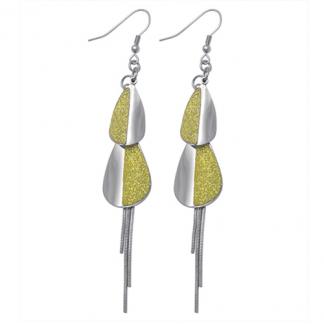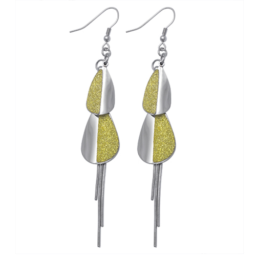 STAINLESS STEEL DANGLE EARRINGWITH 2 LEAVES AND 3 PCS OF WIRES B / G/ YELLOW / BR COLORWITH SAND BLASTED PAPER