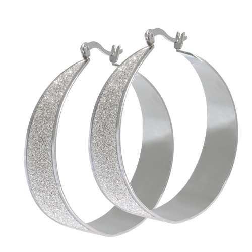 STAINLESS STEEL HOOP EARRINGIN ROUND SHAPEWHITE COLOR WITH SAND BLASTED PAPER