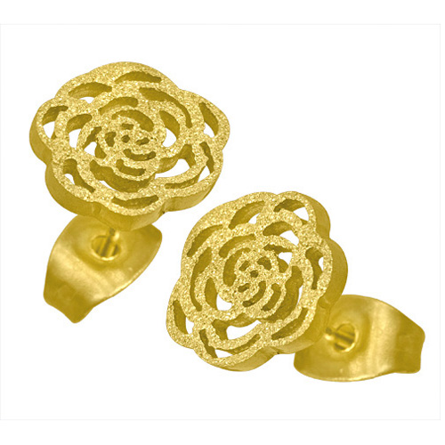 SE745 STAINLESS STEEL STUD ROSE EARRING IN IPG SANDBLAST(LIKE SE744)