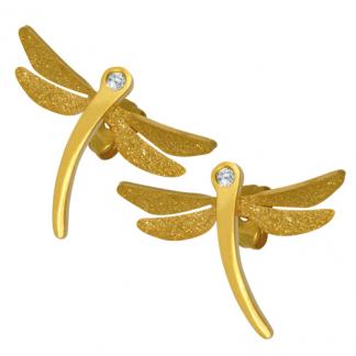 STAINLESS STEEL DRAGONFLY EARRING IN ALL IPG WITH CZ SANDBLAST (LIKE SE781)