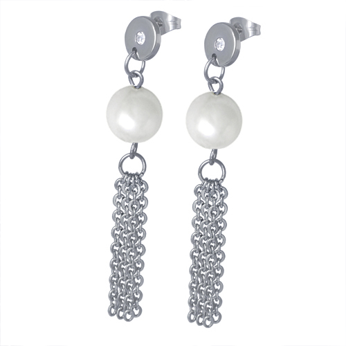 STAINLESS STEEL DROP EARRING WITH PEARL WITH CZ