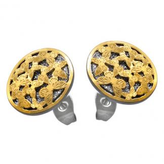 STAINLESS STEEL EARRING IN CIRCLE SHAPE WITH 12 BUTTERFLIES IN IPG 2 TONE