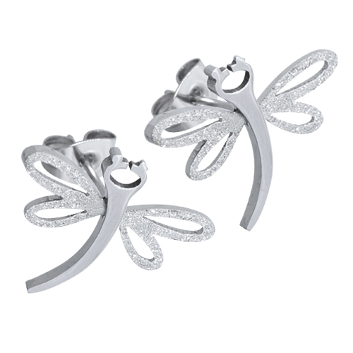 STAINLESS STEEL EARRING IN DRAGONFLY SHAPE WITH SANDBLAST ALL IN STEEL COLOR