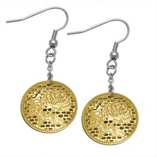 STAINLESS STEEL EARRING IN CIRCLE SHAPE WITH 2 LAYERS WITH ROSE & MOON IN IPG TWO TONE