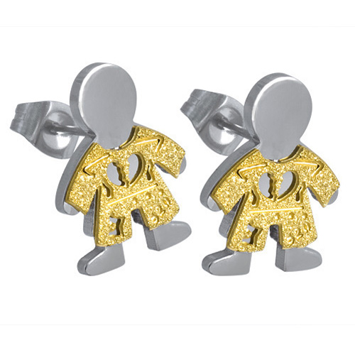 STAINLESS STEEL STUD EARRING IN BOY SHAPE WITH SANDBLAST IN IPG TWO TONE