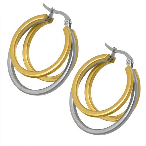 STAINLESS STEEL HOOP EARRING WITH 3 CIRCLES IN IPG TWO TONE