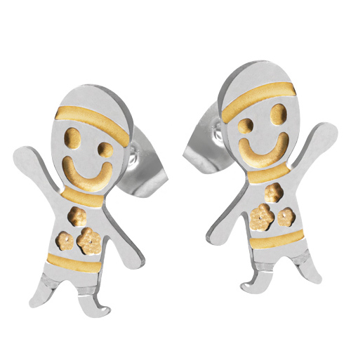 STAINLESS STEEL EARRING IN SMILING KID SHAPE IN IPG TWO TONE