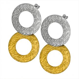 STAINLESS STEEL DROP EARRING IN DOUBLE CIRCLE RINGS WITH TEXTURE (HAMMERED) IN IPG TWO TONE
