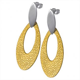 STAINLESS STEEL DROP EARRING IN OVAL SHAPE WITH TEXTURE (HAMMERED) IN IPG TWO TONE