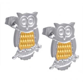 STAINLESS STEEL STUD EARRING IN OWL SHAPE IN IPG TWO TONE