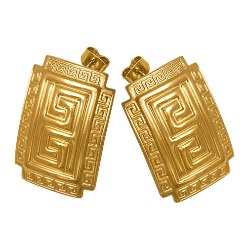 STAINLESS STEEL STUD EARRING IN RECTANGULAR SHAPE WITH PATTERN ALL IN IPG