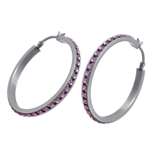 STAINLESS STEEL HOOP EARRING WITH PINK CZ (LIKE SE82)