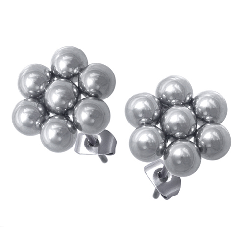 STAINLESS STEEL STUD EARRING IN FLOWER SHAPE WITH 7 BEADS ALL IN STEEL COLOR