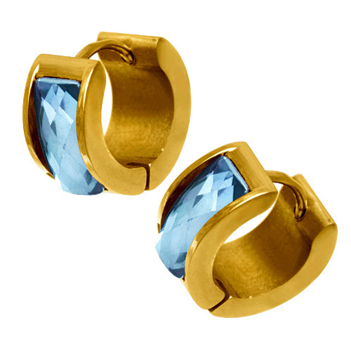 STAINLESS STEEL HUGGIE EARRING IN IPG COLORWITH BLUE STONE