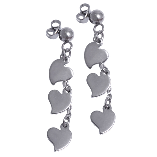 STAINLESS STEEL DROP EARRING WITH 3 HEART ALL IN STEEL COLOR