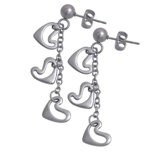STAINLESS STEEL DROP EARRING WITH 3 HEART ALL IN STEEL COLOR