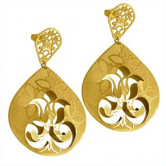 STAINLESS STEEL 3D EARRING IN DROP SHAPE WITH FLOWER PATTERN WITH CUT OUT ALL IN IPG