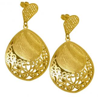 STAINLESS STEEL 3D EARRING IN DROP SHAPE WITH PATTERN WITH CUT OUT ALL IN IPG