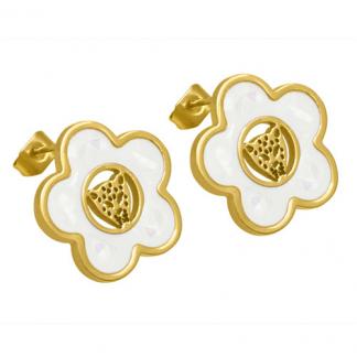 STAINLESS STEEL STUD EARRING IPG IN FLOWER SHAPE WITH PATHER FACE & WHITE ENAMEL