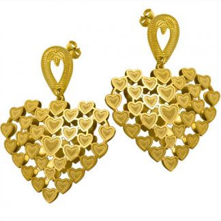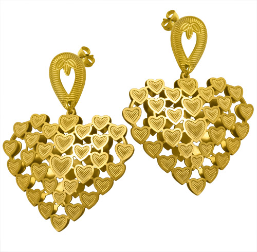 STAINLESS STEEL 3D EARRINGIN HEART SHAPE WITH HEARTS PATTERN ALL IN IPG