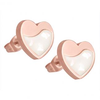 STAINLESS STEEL EARRING WITH WHITE ENAMEL WITH COLORFUL PIECES ALL IN IP ROSE COLOR