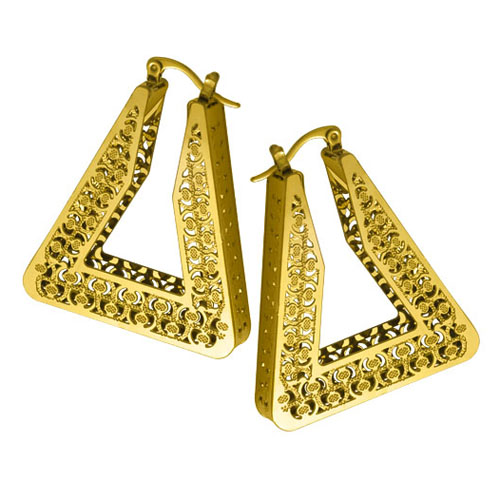 STAINLESS STEEL 3D EARRING IN HOOP STYLE IN TRIANGLE SHAPE WITH CUT OUT ALL IN IPG COLOR