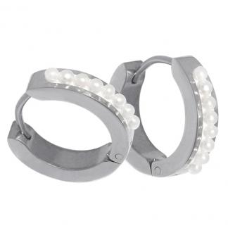 STAINLESS STEEL HUGGIE EARRING IN STEEL COLOR WITH SYNTHETIC PEARL