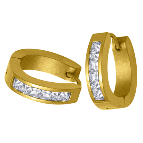 STAINLESS STEEL HUGGIE EARRING WITH 6 CZ ALL IN IPG COLOR