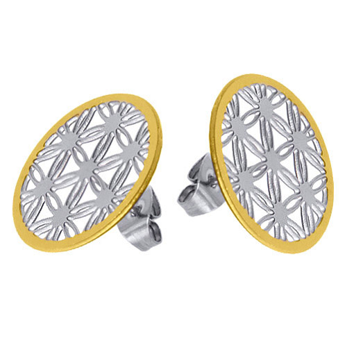 STAINLESS STEEL EARRING WITH FLOWER OF LIFE PATTERN IN IPG TWO TONE