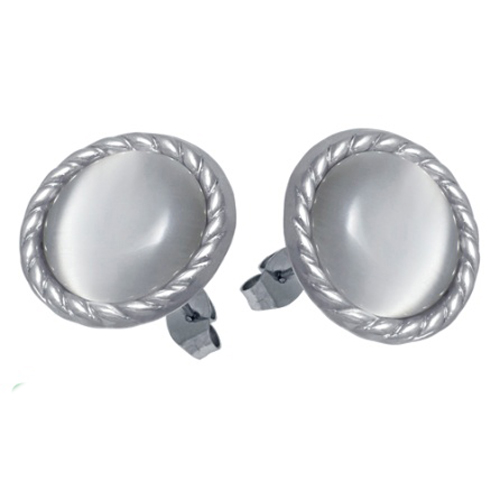 STAINLESS STEEL EARRING IN CIRCLE SHAPE WITH CAT EYE STONE WITH SS COLOR