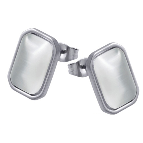SE1181 STAINLESS STEEL EARRING IN RECTANGLE SHAPE WITH CAT EYE STONE WITH SS COLOR