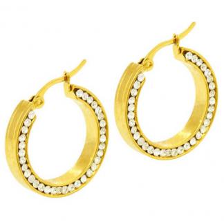 STAINLESS STEEL EARRINGS IN ROUND SHAPE WITH 40 CZ ALL IN IPG COLOR (Set with SP1403)