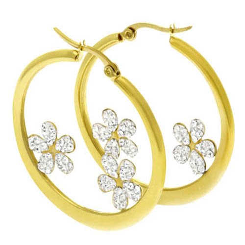 STAINLESS STEEL EARRINGS IN CIRCLE SHAPEm WITH FLOWERS WITH CZ IN IPG COLOR