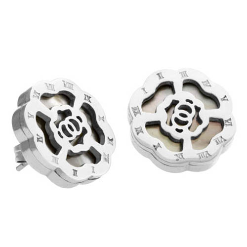 STAINLESS STEEL EARRINGS IN ROSE SHAPE WITH ROMAN NUMBER WITH SHELL