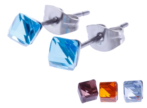 STAINLESS STEEL EARRINGS CRYSTAL IN SQUARE SHAPE WITH BUTTERFLY COVER