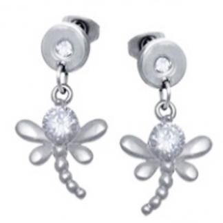 STAINLESS STEEL EARRINGS CIRCLE WITH 1 CZ WITH DRAGONFLY CHARM WITH CZ (Set with SP1231)