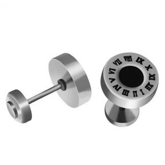 STAINLESS STEEL BABY EARRINGS IN CIRCLE SHAPE WITH ROMAN NUMBERS WITH BLACK ENAMEL