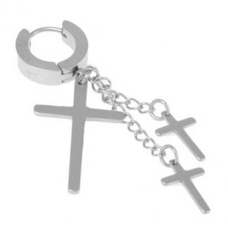 STAINLESS STEEL EARRINGS WITH 3 CROSS PENDANT