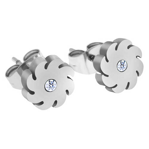 STAINLESS STEEL EARRINGS IN WHIRLPOOL SHAPE IN S/S COLOR WITH CZ