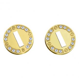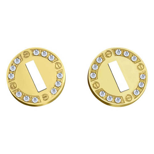 STAINLESS STEEL EARRINGS IN CIRCLE SHAPE WITH SCREW PATTERN WITH SHELL WITH CZ IN IPG COLOR