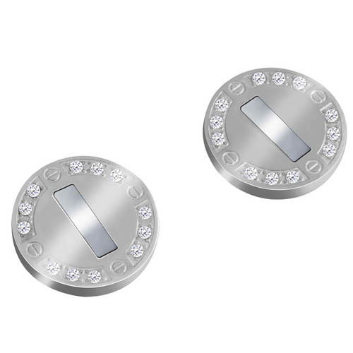 STAINLESS STEEL EARRINGS IN CIRCLE SHAPE WITH SCREW PATTERN WITH SHELL WITH CZ IN S/S COLOR (set with SN557)