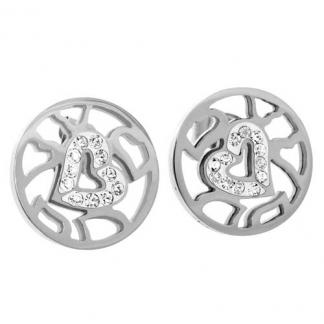 STAINLESS STEEL EARRINGS IN CIRCLE SHAPE WITH HEART WITH CZ IN S/S COLOR WITH WHITE ENAMEL (set with SP1379)